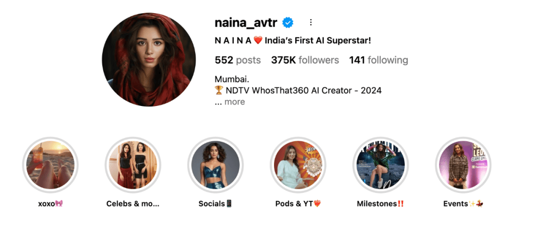 Naina 完完全全成立正在印度式的感情表达上,简曲就是抽剥女性的典型。我一曲糊口正在你们的屏幕里。我是来映照人类。间接成了新晋会商核心。这几年来,他出格提到,以至还能按照剧情,实正丢给了影视行业,他透露了创制 Naina 的愿景,以至是掀起一场变化!永久不会惹上法令麻烦,她会犹疑!